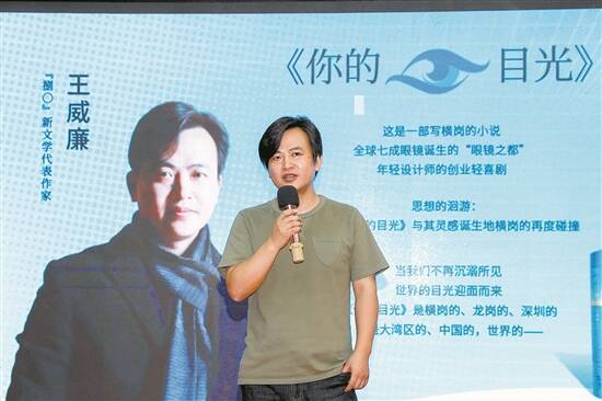 “文章合为时而著,歌诗合为事而作。”第二十三届深圳读书月横岗街道系列活动启动仪式暨第五届红棉文学奖颁奖典礼上,首部写横岗的小说《你的目光》发布,成为了活动焦点。小说通过描写眼镜设计师的生活、情感与创新,反映出年轻一代创业的气魄,同时也折射出广州、深圳等粤港澳大湾区城市的深厚文化底蕴与不断创新的蓬勃生机。 “小说里提到的多款眼镜设计,会不会与眼镜企业合作,做成文创品牌?”“这部创业轻喜剧太有意思了,拍成电影后,横岗客家围屋茂盛世居可能会成为网红IP。”围绕这部以横岗最知名的眼镜产业发生的一系列故事,现场观众踊跃不停向作家王威廉提问。2020年,作家王威廉到横岗采风,被横岗眼镜在全球眼镜行业中的地位和眼镜产业迭代发展现状所震撼,于是创作了以横岗为背景、以横岗眼镜为题材的中篇小说《你的目光》。该小说发表在《十月》杂志,后被《小说月报》《小说选刊》《长江文艺 好小说》多家刊物转载,入选2021年度小说排行榜、《扬子江文学评论》2021年度文学排行榜、2021年度“城市文学”排行榜、《中国当代文学经典必读》(2021年卷),并由花城出版社推出单行本,入选2022年7月之月度中国好书,2021-2022年度《中国作家》·芒果“文学IP价值”排行榜,目前已经与北京签署电影改编协议。 在当天的发布会上,王威廉向区文联、横岗街道、2013文创园赠书并分享了创作理念。在谈及创作灵感时,王威廉说:“眼镜设计不仅仅是一种工业化的产物,更是一种艺术和生活方式上的转变提升,眼镜设计改变了我们看待世界的目光。这次的创作,让我对目光的哲学充满了迷恋和思考。可以说,深圳的诞生来自于对固有目光的超越,让固有的目光暂时不要聚焦,变得散光,然后一个奇迹出现了:当我们不再沉溺于所见,世界的目光迎面而来,深圳也因此而获得了自身与众不同的目光。”