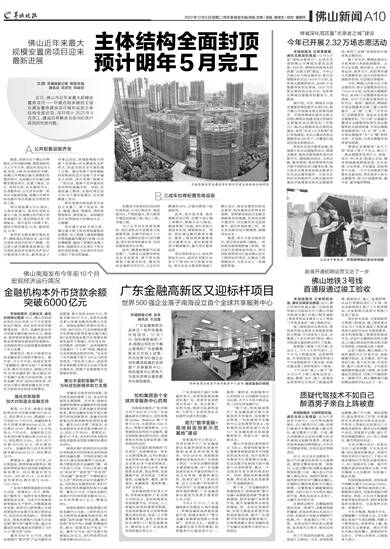 羊城晚报讯 记者吴泳、通讯员陈敏仪报道:近日,佛山市南海区发布2022年前10个月宏观经济运行简况,全区本外币存贷款增速加快。其中,金融机构本外币贷款余额突破6000亿元,制造业、租赁和商务服务业