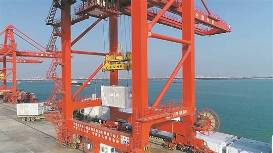 江企货物通过江门港出口(资料图) 江关宣供图 |