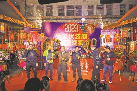 文/图 羊城晚报记者 杨苑莹 “没过正月十五还是年。”春节假期虽已结束,元宵节前,龙狮大会、乐安花灯会、行通济、塘肚“行神”等年俗活动在佛山一一热闹上演,其中不得不提顺德容桂的“饮灯酒”。 在正月十六前,容桂各坊社都会举行隆重热闹的“饮灯酒”活动,各社区挂起流光溢彩的花灯,亲朋好友共聚一堂分享美食,喝彩声、鞭炮声响彻云霄,现场还有醒狮助兴以及激动人心的投灯环节……“饮灯酒”还有什么精彩画面?就跟随羊城晚报记者的步伐来一探究竟吧。 历史:延续两百年的新春民俗 “饮灯酒”又称为“灯酒宴”“灯酒会”“灯酒节”“庆灯酒”“花炮会”等,详细起源尚无书面记载,但根据清代道光《阳江县志》《佛山忠义乡志》等典籍记载,明末清初,在顺德、南海、番禺、花都、中山、东莞等岭南地区流行,至今已延续两百多年。随着时代的发展,珠三角其他地区的灯酒活动逐渐衰落或消失,顺德仍然持续举办,传统习俗保留完好。 最初,“饮灯酒”是祭祀社神、祈祷五谷丰登或庆祝家中添丁的活动。旧时,添新丁的人家会于正月初一在家里、祠堂、社庙里挂上花灯,“灯”与“丁”发音相近,所以点了灯就代表有新丁入族。到了元宵节前后,这些人家拿出猪脚姜、红鸡蛋送太公,太公则出钱宴请所有男丁宴饮,分猪肉、分姜蛋,并赠一封“大利是”给新丁。 文献资料记载,当时有钱人家会挂玻璃纸糊的大型走马灯,贫穷人家则挂树头灯,即用小树头扎上彩色纸花做成的花灯。花灯上还会贴有红纸一张,上面写着新丁的姓名等字样。 挂好花灯后,人们还会在社公处摆上一坛坛酒(灯酒),中午或傍晚时分,人们便自发在社公旁或祠堂里“打边炉”。一边喝酒一边吃火锅,这便是最早的“饮灯酒”。若这批灯酒没喝完,便会留到端午吃龙船饭时一起享用。 此前,顺德“饮灯酒”与其他地区无异,多由“点灯”和“宴请”两部分组成。到了20世纪90年代,随着经济发展,顺德一些富裕村开始以社、庙为单位,举办灯酒宴,并增加“投灯”环节。酒宴则由德高望重的长者召集村民商量举行,后来随着灯酒宴规模和影响扩大,一些村还会成立灯酒宴筹备理事会来决定与执行。 自古富庶的容桂对“饮灯酒”的传承延续更为重视。据容桂街道宣传文体旅游办公室介绍,几百上千桌的灯酒宴会在容桂并不少见,且宴请对象不局限于族中男丁,而是敞开大门欢迎四方来客。不少居民会特地邀请朋友来感受一番,有些地方还会请长者免费吃宴。 慢慢地,新增的“投灯”环节逐渐成为“饮灯酒”最重要的环节,“点灯”环节则逐渐简化。花灯多是制作精美、流光溢彩的走马灯款式,一般设有6-12盏,每一盏花灯都被赋予美好的祝福,如“身体健康”“一帆风顺”“生意兴隆”等。“投灯”环节在宴席期间举行,人们一边等待美味佳肴上桌,一边听着主持人呼吁大家竞价投灯。 现场:时隔三年饮灯酒热闹回归 从容桂著名网红打卡点柴油机1959景区隔河眺望,对岸烟火缭绕人群聚集,传来阵阵铁器摩擦声、谈笑声,这里便是举行“饮灯酒”的容奇长安伏波庙。据了解,伏波庙历史悠久,其原址在新涌水闸德胜河涌口,于光绪丁未年重修至今已有113年。容桂的“饮灯酒”这项年俗活动也在这里延续了一百多年。 “这个是黄皮叶,沾点水撒在这两个龙头上,就是一直传承下来的开光仪式。”早上10点半,容桂街道卫红社区容奇长安伏波庙前,灯酒晚宴活动负责人叶坚强正拿着一束黄皮叶举行简单的准备仪式。 正月初十这天天刚亮,长安社的居民们便早早起床准备,打扫、整理、点香,摆上水果和鲜花装饰一番。伏波庙前的空地上陆续摆上了左邻右“社”送来恭贺的花篮。在卫红社区长大的阿成和阿文一高一低地挂起花灯,一眼望去华灯错落、璀璨夺目。他们两个都是从小在伏波庙前跑着玩着长大的,每年看着社区里的大人安排统筹,长大之后他们也义不容辞地承担起了这份责任。 “停了三年重新恢复,我们肯定是非常高兴的。开年后社区通知可以恢复灯酒,大家商量之后觉得一定要搞,即便今年筹备比较匆忙,大概只有3天时间,规模也不大,但是大家都非常支持、非常踊跃,我们也很用心去准备。”阿成和阿文说。 “咄咄咄——”菜刀与砧板碰撞的声音在不远处的棚架下发出,洗、切、烫、炸,十几个阿姨正利落地准备食材。阿姨告诉记者,她们从早上6点左右开始准备,菜式都是非常传统又有“好意头”的鸡、鱼、虾、冬菇等。80围桌、近1000人的晚餐食材被半身长的大锅垒起,“哗啦啦”几十斤的芋头片被厨师倒进大炸锅中,翻腾的热油、蒸腾的雾气氤氲在临时后厨里。 “长安伏波庙灯酒晚宴是我今年第一单灯酒围餐,也是近年来第一次恢复制作大围餐。”长安伏波庙灯酒晚宴总厨师吴后成感慨,他为长安社做灯酒围餐已经有五六年的时间,彼此都有一定的默契。 据叶坚强介绍,“饮灯酒”习俗除了早上挂起花灯的开光仪式,接下来还有醒狮表演取青、高杆、三凳,烧“头炮”、投灯以及灯酒晚宴。 傍晚6点,人群开始聚集,“咚咚咚”醒狮的锣鼓声在容奇新涌响起,伴随着此起彼伏的鞭炮声,醒狮一摇一晃地进庙参拜、“采青”。醒狮紧跟击鼓的节奏,进行“高杆”“三凳”表演,河道边、小路旁围满了人。“好久没这么热闹了,因为我就住在这里,所以带小孩来看看,他都没见过。”黄小
