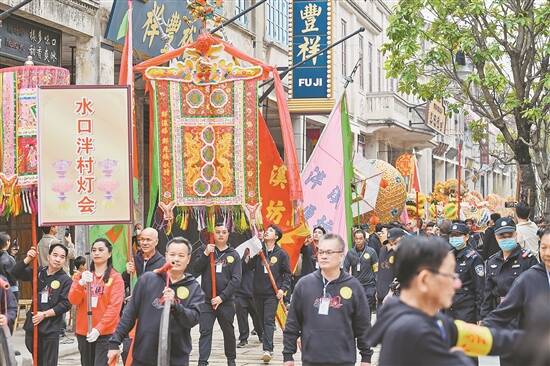 羊城晚报讯 记者陈卓栋,通讯员谭婷婷、谭耀广报道:记者6日从江门开平市委宣传部获悉,2月5日元宵佳节,开平市在赤坎华侨古镇举办国家级非物质文化遗产项目——水口泮村灯会民俗展演活动。活动还得到央视“上元佳节 灯火良宵”特别直播节目的关注。由央视策划,并携手江门市委宣传部和开平市共同制作的《广东江门:龙腾狮舞送花灯 侨乡骑楼话团圆》直播活动,在央视新闻客户端等12个媒体平台上同步播出,吸引了广大市民群众以及海外华侨华人、港澳同胞关注。 据介绍,水口泮村灯会起源于明代,至今已传承500多年,是开平规模最大、场面最热闹、影响最广、名气最盛的传统民俗活动,于2008年入选第二批国家级非物质文化遗产代表性项目名录。泮村灯会每三年举办一次,在农历正月十三,家家户户张灯结彩、燃放炮竹,村民敲锣打鼓,舞龙舞狮,举着花灯游遍全乡自然村。此次为进一步推进文旅融合发展,促进非遗项目的保护传承和创新性发展,开平市在赤坎华侨古镇举办泮村灯会民俗展演活动,让更多市民和游客感受侨乡文化魅力。 当天下午,伴随着三声炮响,泮村灯会的起灯仪式拉开了帷幕。随后起鼓,现场锣鼓喧天,鞭炮齐鸣,高照、祭品、三牲、烧猪、罗伞、瑞书大旗、金龙、醒狮、锣鼓队等依次进场。各个方阵汇合成总队伍,仿佛变成了一条巨龙,围绕着五米多高、装饰精致华美的大花灯盘旋。在龙狮伴舞中,由140名表演者组成的泮村花灯队伍,在骑楼群中巡游。 当天展演活动吸引了大批游客、居民,以及春节期间回乡的海外乡亲观赏。 记者了解到,近年来,开平市充分借助中央媒体平台直播的机会,用好端午、中秋、春节、元宵等中国传统节日,先后举办了龙舟比赛、中秋直播、烟花无人机汇演、元宵直播等活动,展示侨乡文化、传播中华文化。相关负责人表示,接下来,开平市将充分利用世界文化遗产——开平碉楼与村落等文化资源优势,积极发挥赤坎华侨古镇重要平台作用,充分对外传播展示侨乡深厚的文化底蕴,推动中华优秀传统文化更好走向世界。