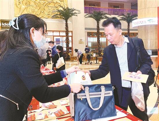 政协委员在报到处领取会议资料 卢锦权 摄 |