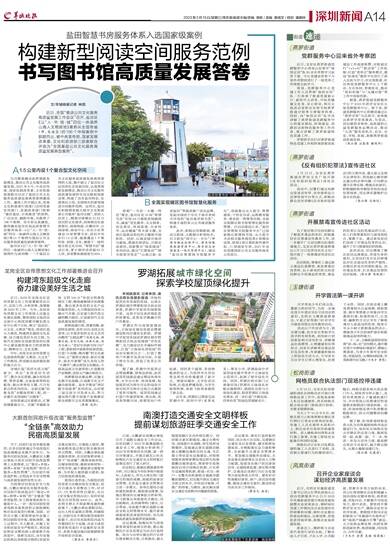 文/羊城晚报记者 林园 近日,全国“推进公共文化服务高质量发展工作会议”召开,盐田区《以“人·书·馆·城”四位一体涵养山海人文栖居地》案例从全国各省(市、自治区)的196个