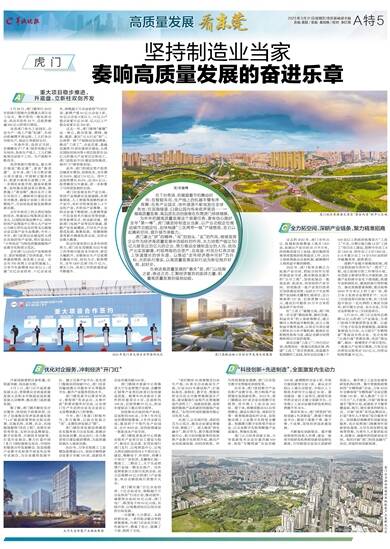 文/王俊伟 在T台秀场,名模踏着节拍舞动时尚;在智能车间,生产线上的机器手臂有序挥舞;在各产业园区,快件源源不断地发往全球各地;在滨海绿道,口袋公园内传来欢声笑语……一幅高质量发展、高品质生活的画卷在东莞虎门徐徐铺展。 为牢牢把握高质量发展这个首要任务,更有信心跑好全年“第一棒”,虎门镇坚持制造业当家,以产业功能定位推动城市功能定位、加快构建“三区两带一核”产城格局,全力以赴腾拓空间、提升城市承载力。 虎门拿出“拼”的精神、“闯”的劲头、“实”的作风,继续发挥企业作为经济高质量发展中流砥柱的作用,大力培育产值过50亿元甚至过百亿元的企业,努力推动全镇制造业的人均、地均产出实现翻番,村组两级的总资产、总收益、村民分红再次驶上快速增长的快车道。以推动“全年经济稳中向好”为目标,大抓执行落实,以高质量发展实际行动为新征程开好局、起好步。 在奋进高质量发展的“春天”里,虎门以抢跑之姿、奋进之态,汇聚经济复苏的澎湃力量,积蓄高质量发展的强劲动能。 重大项目稳步推进,升底盘、立新柱双剑齐发 3月28日,虎门镇举行2023年招商引资推介会暨重大项目动工仪式。集中签约一批优质企业,活动共发布24个、总投资额逾300亿元的项目情况。 走进虎门各大工业园区,企业生产一线上产能“拉满”,车间内机械臂不停运转,工人们争分夺秒生产,保证订单按时交付。 一年春作首,奋进正当时。在维峰电子(广东)股份有限公司车间内,各条生产线上,工人们熟练地完成各个工序, 生产流程平稳有序。 经济航船行稳致远,重大项目既是“稳定器”,更是“推进器”。近年来,虎门全力抓好重大项目建设,牢固树立服务意识,抓紧开展项目前期工作,进一步简化审批手续,提高审批效率,加快推动规划项目落地,抢抓施工“黄金期”,推动未开工项目尽快开工,确保项目建设安全有序推进,确保计划竣工项目如期投产,为加快高质量发展增添新动能。 去年年底动工的大湾区国际时尚谷,将建成以纯集团总部为龙头,以国际时装品牌中心、国际时尚产品智造中心等五大产业中心为核心的生态友好型龙头服装企业总部产业生态集群;今年上半年,虎门还将启动建设的大湾区衣流时尚产业园,将打造成以“小单快反”为特色的服装服饰产业数字化转型示范区。 去年虎门已启动产业地图项目、更好地摸清了经济底盘,今年将提质增效、扶优规上企业。在去年755家规上企业的基础上,力争今年新增到800家以上;实施“百亿企业培育、十亿企业成长、纳税超千万企业扶持”行动计划,新增产值50亿元企业2家、30亿元企业3家以上,10亿元产值企业累计达20家、亿元以上产值企业累计达200家。 过去一年,虎门围绕“破题”这一核心,推动筑基、塑城、强核、提质、惠民“五大行动”和“三区两带一核”产城格局加快落地,推动“工改工”、企业总部、基础设施等74项在建项目建设,大湾区国际时尚谷等4项总投资共30亿元的重大产业项目实现动工,虎门高铁站TOD建设加快推进,城市门户新形象初显。 此外,虎门的固定资产投资总额连年增加、结构优化,全年增长24.8%,超过110亿元。其中工业投资增长45.8%,达28.5亿元,投资额创五年最高,进一步积聚了可持续发展的后劲。 虎门在发展支柱产业方面,坚持产业集群化发展道路,在智能制造、人工智能等战略性新兴产业中,有针对性地发展1-2个支柱产业,并形成产业集聚。支持企业基于物联网、大数据等新一代信息技术开展应用型创新,培育新增长点、形成新动能。借助虎门电商产业等良好基础,紧跟产业发展潮流,引导生产企业规范发展、集聚发展。挖掘预制菜等新兴赛道优质企业,支持企业做大做强。 经过年度攻坚以及多年持续努力,虎门在东莞镇街2022年度工作考核中挺进全市前列、排名大幅跃升,全镇地区生产总值增长触底开局、扭负为正、稳势增长,全年GDP达到735.77亿元、增长1.3%,各项工作的质量效益不断提升。 优化对企服务,冲刺经济“开门红” 开新局就要抓住新机遇、实现新突破、闯出新天地。 2月1日,虎门召开高质量发展大会,贯彻落实全省高质量发展大会和全市制造业高质量发展大会精神,推动虎门高质量发展。 据了解,虎门镇不断优化对企服务,持续给予政策扶持,出台了加速推动经济高质量发展“1+4”配套政策等扶企助企政策,实施名师、名牌、名企、名园服装服饰“四名工程”,安排专项培育资金,支持企业品牌建设、数字化转型、开展技术创新等。打造专业展会,聚力打造中国(虎门)国际服装交易会、中国纺织服装合作发展峰会、信息线缆产业数字化转型升级发布会等专业展会,为企业提供发展平台。建立完善产业平台,优化虎门服装协同创新中心、虎门信息传输线缆公共服务平台等服务平台,提升产业服务供给水平。 虎门镇党委书记蒋亚军表示,要按照“有求必应、无事不扰”的要求服务好企业,让在虎门生产生活的企业及企业家心无旁骛地做自己的事情。 今年,虎门各部门积极作为,多方施策,以助企发展之“进”,支撑经济发展之“稳”。 虎门镇经济发展局将继续优化服务助力企业发展,助推企业向高而攀、向远而行;全力推进项目建设提质增效,为高质量发展注入强劲动能。 2023年,力争实现规上工业增加值增速5.5%,省级专精特新企业累计突破100家,高新技术企业存量