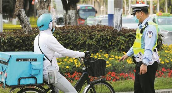 执勤交警对违法行为人进行安全教育 受访者供图 |