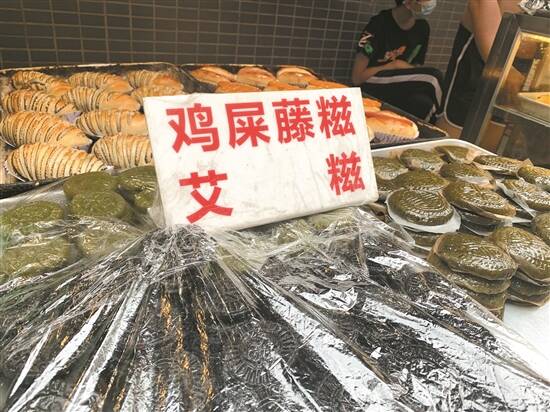 江门一市场内摊档出售的鸡屎藤糍及艾糍 陈卓栋 摄 |