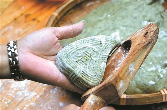 制作鸡屎藤饼时用饼模给粉团定型 赵善积 摄 |