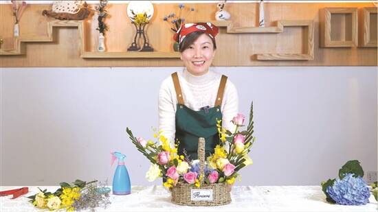 广州市旅游商务职业学校的樊贞老师和杨波老师,通过对多种植物花材的修剪,排列组合,带领学子沉浸式体验手提花篮和花束的制作,开启“花花世界”里的美妙旅程。