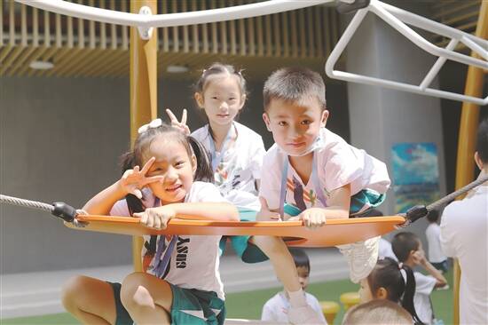 省实荔湾二小一年级新生在游戏区体验活动