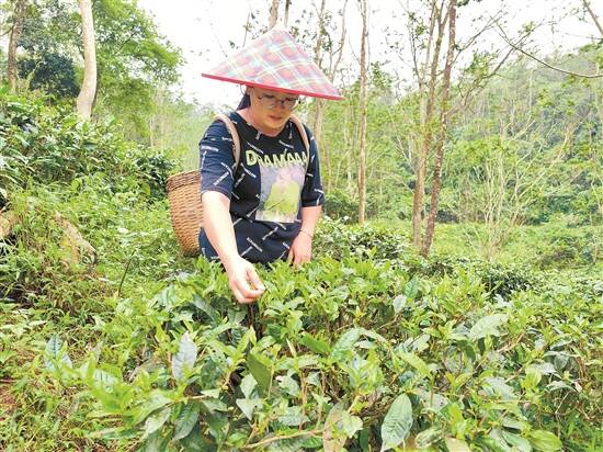 吴小敏在七星坑原始森林里的星湾茶场采摘绿叶蝉茶 |