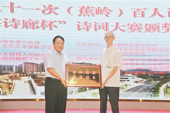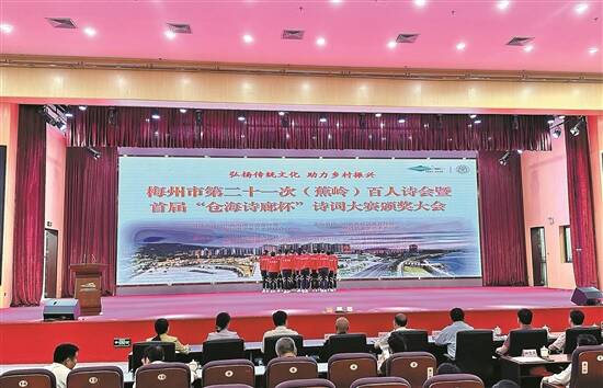 文/赖嘉华 危健峰 图/赖嘉华 “弘扬传统文化助力乡村振兴”。近日,梅州市第二十一次(蕉岭)百人诗会暨首届“仓海诗廊杯”诗词大赛颁奖大会在梅州蕉岭县丘成桐国际会议中心举行。梅州市委常委、宣传部部长张运全,广东省方志办党组成员、副主任丘洪松,中国书法家协会理事、广东省书法家协会副主席丘仕坤等领导嘉宾以及闽粤赣三省110多位诗词文人参加活动。 一二三等奖共9名 在活动现场,诗词文人上台吟诵诗词作品,引得阵阵掌声。活动以诗会友,诗人间相互欣赏、相互交流。现场还有仓海诗廊歌伴舞表演、精彩的旗袍秀表演、优美动听的客家山歌演唱。国家一级演员徐秋菊献唱了自己作词作曲的客家山歌。 随后,首届“仓海诗廊杯”诗词大赛赞助人邓崇亮宣读首届“仓海诗廊杯”诗词大赛获奖名单并介绍评比概况及特色,与会嘉宾为诗词大赛获奖代表颁发荣誉证书及奖金。 据介绍,诗词大赛自2022年7月底至11月20日进行,参赛者通过中国传统诗词即格律诗词的形式,宣传民族英雄丘逢甲,弘扬爱国主义精神,推动美丽乡村建设。大赛共征集到近800份参赛作品。邀请中华诗词部分编委、广东中华诗词学会和岭南诗社常务理事中的成员、梅州市诗词学会有关人员组成评审小组进行评审。经过认真评审,共评出一等奖1名,奖金10000元;二等奖3名,奖金5000元;三等奖5名,奖金2000元;优秀奖20名,奖金500元。 百人诗会第五次走进蕉岭 活动期间还开展了熊东遨诗词讲座,组织诗友走进文人故居、观览绿水青山,在丘逢甲故居、丘成桐故居、仓海诗廊中采风创作,分享交流创作经验。 据了解,这是自2004年蕉岭承办第一届梅州市百人诗会以来该活动第5次走进蕉岭县。梅州素有文化之乡美誉,一直以来诗风兴盛,创作活跃,诗人辈出,名扬天下。作为首批“中华诗词之乡”,蕉岭县诗词文化底蕴深厚,当地重视传统诗词文化建设,1982年成立的蕉岭县诗词楹联工作者协会是梅州最早成立的诗词社团组织,还有近年立项实施建设的仓海诗廊,创新性将诗词与书法艺术紧密结合起来,打造了“诗的长廊”,不断丰富诗词文化传承载体,让诗词更好地贴近实际、贴近生活、贴近群众。 据悉,举办梅州市百人诗会旨在进一步弘扬中华优秀传统诗词文化,鼓励更多人积极参与到梅州文化事业和文化产业改革发展中来,创作更多凝聚奋进力量、群众喜闻乐见的文艺精品,以文化助力乡村振兴,推动梅州经济社会高质量发展。