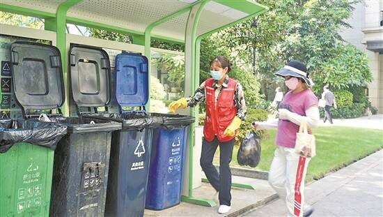 督导员耐心为居民提供垃圾分类服务 受访者供图 |