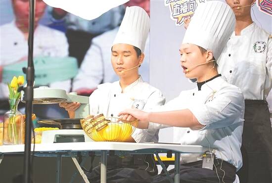 顺职院烹饪学院学生正在参加直播比赛 |