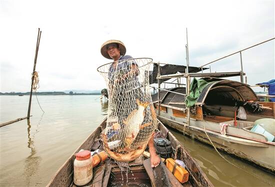 渔民展示渔获 芦苞镇供图 |