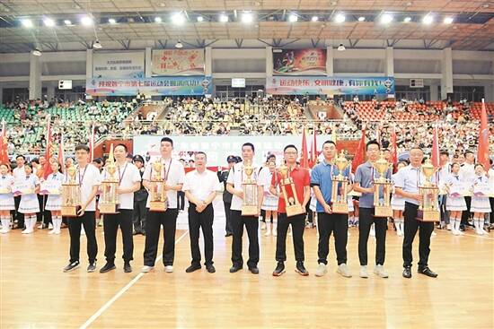 文/羊城晚报记者 陈锴跃 通讯员 罗凯瀚 图/受访者提供 8月28日,普宁市第七届运动会在普宁市明华体育馆举行闭幕式。运动会自8月8日开幕以来,共进行了1902场次的比赛。 据介绍,本届运动会是普宁市深入实施“百千万工程”,奋力实现“创建全国百强县 经济总量上千亿”目标,推动高质量发展重要时期举行的一次高格局、大规模的综合性体育盛会,集中展现了普宁这座商贾名城、创新之城、全国体育先进市的独特魅力。 体育盛会全民参与 在14日下午市运会羽毛球比赛的现场,选手们挥汗如雨,各自施展出浑身解数,将劈扣、吊球等球技展现得淋漓尽致,一次次挥拍扣杀不时引得现场观众阵阵叫好。赛场上,洋溢着的欢声笑语与阵阵呐喊声,与激烈的拼搏气氛融为一体,展现出积极向上的精神风貌。 记者在采访中获悉,参加本届运动会的有普宁全市29个乡镇场街道、9个市直系统共38个代表团1736名运动员,角逐篮球、乒乓球、羽毛球、田径、游泳、三棋、足球7大项316小项比赛,参与人数达4000多人,是一场全民参与的体育赛事。 运动员们顽强拼搏、再创佳绩,全体裁判员恪尽职守、公正裁决,全体工作人员和志愿者精益求精、周到服务,共同为普宁全市人民奉献了一场热烈、精彩、节俭、创新的“运动盛宴”。 历经近一个月的激烈角逐,1902场次的比赛进行,1640块奖牌各有其主,139支代表队获得了奖杯,111名运动员、28名裁判员和34支代表队荣获“体育道德风尚奖”。 普宁元素火爆出圈 体育盛会所展现出的精神风貌,还代表着一座城市的精神文化内涵。在本届运动会中,各种普宁元素更是火爆出圈,充分彰显着普宁的城市底蕴和普宁人民对传统文化的热爱,更体现了普宁人民奋进拼搏的精神。 以会徽为例,会徽由普宁市第七届运动会中的“7”通过艺术巧妙结合,造型融入了举办地普宁市的“普”、“练江水”、“飞舞的红绸”、“城市影响力”以及“拼搏的运动员”等主题元素,进一步体现出普宁深厚的文化底蕴和鲜明的特色,体现普宁市第七届运动会的特性。 会徽由绚丽的色彩和锋芒的笔触构成,体现鲜明的象征意义、体育韵味和时代韵感。采用“发展蓝”为主色调,“精神红”为辅助色,“发展蓝”和“精神红”充分体现出普宁市第七届运动会独特的文化底蕴和人文精神,具有时代特征及高水平的艺术表现力和感染力。 此外,吉祥物则以普宁特色文化——英歌舞中的“时迁”为原型,既保留原本特点,又显可爱风趣。黑色与金色的搭配,体现着普宁深邃久远的历史文化底蕴,身上的祥云图案,表达着吉祥、喜庆、幸福的寓意。整体形象活泼可爱,易于记忆和传播。 2023年春节,普宁英歌舞的“小时迁”形象在网络上走红,先后三次受到央视报道,可以说“小时迁”便是“普宁”的城市形象元素之一。在英歌舞中,“时迁”常是舞蛇领头之人,而此次“小时迁”的形象出现在运动会中,更是体现了对普宁市将在高质量发展的征程上攻坚克难,屡创佳绩的美好寓意。 体育事业蓬勃发展 市运会的圆满完成,既是对普宁市体育事业发展成果的全面检阅,更是全市人民精神风貌的集中展示。本届运动会中,组委会还特别设立了市运会开幕式文艺表演特别奖、热心支持体育事业贡献奖和热心支持体育事业突出贡献奖;为表彰先进,还评选出了一批群众体育先进工作者。 每四年一届举办市运会、将市运会作为展示普宁城市形象的重要窗口……作为一个县级市,普宁何以能够举全市之力打造全民参与的体育盛事?细思其因,是体育事业取得了长足发展、全民健身体育运动已经融入普宁每一个社区村庄老百姓的生活中来,成为老百姓追求美好生活的一个生动写照。 当前,普宁正紧扣“商贾名城、创新之城”发展定位,深入实施“百千万工程”,加压奋进、真抓实干,奋力实现“创建全国百强县,经济总量上千亿”目标。 在推动体育事业蓬勃发展方面,普宁市不断完善公共服务体系,广泛开展全民健身活动。此外,普宁各乡镇场街道、市直各单位努力发展体育事业,积极参与体育健身运动,社会各界人士大力支持体育活动。2020年以来,普宁建成7个社区体育公园、22个足球场,举办28场次体育比赛活动,城市美誉度和影响力不断提升。 据悉,普宁将以此次运动会为契机,大力弘扬“更快、更高、更强、更团结”的奥林匹克精神和中华体育精神,持续推动群众体育、竞技体育、体育产业协同发展、高质量发展。与此同时,加快建设繁荣开放的“商贾名城”、多元融合的“创新之城”,着力打造粤东县域高质量发展标杆,奋力开创普宁现代化建设新局面。