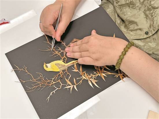 文/羊城晚报记者 李艺戈 图/羊城晚报记者 颜业宏 秋风起,蟹儿黄,金桂飘香,秋梨满树。秋天是成熟的季节,金灿灿的麦秆象征着丰收的喜悦。麦收过后,剩下的一根根麦秸秆看似毫不起眼,但在深圳市罗湖区一位非遗传承人聂亚平的眼中,这些都是她的“宝贝”。处理过的麦秸秆经过她一双巧手作画,就变成了一幅幅灵动的画作,这便是麦秆画制作技艺。 出身麦秆画世家 从小与麦秆画结缘 1990年出生的聂亚平,是中国民间文艺家协会会员、聂氏麦秆画第六代传承人。她出身于河南濮阳的麦秆画世家。“从我记事起,我的身边就充满了小麦秆,我的父亲总是板着腰杆在书桌面前作画,对我影响非常大,因此我从小就跟着我父亲学习麦秆画。在2018年,我的父亲聂远征被评为国家级非遗传承人,我现在是麦秆画的第六代传人。”聂亚平告诉记者。 从小因为身体原因,聂亚平无法和伙伴们一起玩耍。为了打发无聊的时间,父母便开始教她做麦秆画。在聂亚平小学时,她在父母的指导下用麦秆画的基础技法——平贴技法,做一些亭台楼阁拿到学校里参加手工展。 随着年龄的增长,聂亚平做麦秆画的技术也愈发娴熟,她开始接触难度更高的手法技艺。“上了大学后,我开始练习多层次粘贴技艺、鳞片技艺、‘毛毛刺’粘贴工艺等,那个时候刚开始会有人说做得不够好,会受到一些批评和指正,自己心里会有些抵触,但是后来发现确实存在一些差异,我会虚心请教,不断提高自己的技艺水平。”聂亚平表示。经过不断的练习,她从最初画一些星星、苹果等简单图案,到能用麦秆做出一幅活灵活现的中国龙拿去出售。 在聂亚平23岁那年,她完成大学学业后,为了寻找更广阔的发展天地,来到了深圳这一朝气蓬勃的城市,开始了她传播麦秆画的路程。 不断探索艰难磨炼 执秆为画铸匠心 麦秸秆是麦秆画最重要的原料,它的挑选十分讲究。“我们需要选出颜色比较均匀、没有斑点的优质麦秆,原料选好之后通过硫黄熏蒸消毒,使颜色更加均匀,再经过中药的浸泡,起到防虫蛀的功效。”聂亚平向记者介绍道,麦秆画作为一项纯手工工艺,挑选麦秆只是制作麦秆画的第一道工序,想要制作一幅完整的麦秸画作品,还需要经历“熏、蒸、漂、刮、推、烫、剪、刻、编、绘”等多道工序。 聂家自明朝宣德年间从事麦秆画制作,至今已有几百年历史。据聂亚平介绍,古人流传下来的麦秆画大多是平面的形式,制作相对简单。后来,为了使画作更加生动,他们会使用一些立体工艺技法。聂亚平在继承传统技艺的基础上,不断完善平贴技法,发展了立体浮雕式粘贴等新技法,给麦秆画注入了新的生命力。 “多层次粘贴技艺、鳞片技艺、‘毛毛刺’粘贴工艺都是目前我用得比较多的技法,而且处理过的麦秸秆颜色亮丽、韧性好,在贴的时候,不同的角度会呈现不同的颜色,十分神奇。”聂亚平说。 在麦秆画制作手法上,聂亚平与父亲聂远征不断探索,他们发现熨斗和烙铁两种制作手法可以使麦秆画的制作锦上添花。经过烙铁熨烫的麦秆画,在色泽呈现上,碳化后会呈现深浅不一的色泽。用专业术语表示就是“深糊、中糊、浅糊”,他们往往根据麦秆“糊”的程度来判断色泽深浅。 发扬优秀传统文化 传承麦秆画制作工艺 “当我从父母手中接过这个‘接力棒’时,我才真正明白了传承的意义。”2013年,初到深圳的聂亚平干过许多份工作,每天都过得很充实,但她从未放弃过麦秆画制作。为了让更多人认识这古老的民间艺术,她经常自己去寻找可以展演的活动。“我觉得深圳这座城市非常友好,每次展演大家都很尊重我,并且展现出对我们传统手工艺的欣赏。”聂亚平说。 为了让更多的人参与麦秆画的制作,让这门传统艺术继续发扬光大,聂亚平成立了深圳市芳兰博艺文化发展有限公司,致力于传承推广中华优秀传统文化。同时,她克服身体的不便,长期推广非遗进校园、进社区等活动,让更多的人了解麦秆画,学会创作麦秆画。“在教学的过程中,我会引导学生们发挥自己的想象力来进行创作,学生们往往也能给我带来意想不到的惊喜。”聂亚平告诉记者。 不仅如此,聂亚平还没有忘记她的残疾朋友们,她通过市残联举办的“残疾人技能提升培训服务”,长期开办麦秆画培训班,累计培养500余名残疾人系统学习麦秆画技艺,让他们能掌握一技之长。 从2013年来到深圳传承麦秆画手艺至今,聂亚平累计传习2万余人次。她的作品荣获第十七届中国国际文化产业博览交易会“中国工艺美术文化创意大赛”金奖、“中国(广东)民间工艺博览会”精品展银奖、“中国汉博杯”银奖等。聂亚平表示,希望在未来能培养出一批传承人,让麦秆画这项文化遗产薪火相传。