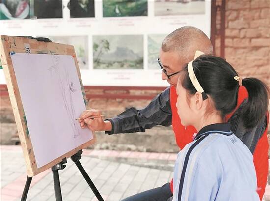 鹤山美协老师教授陈山村小朋友作画 |