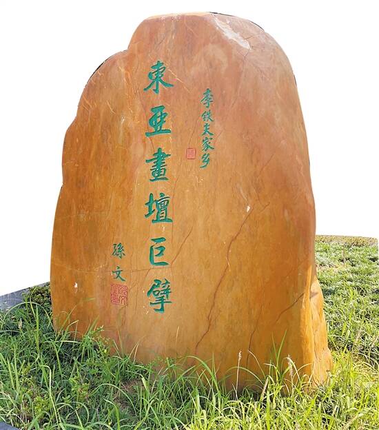 陈山村内竖立的“东亚画坛巨擘”石碑 |