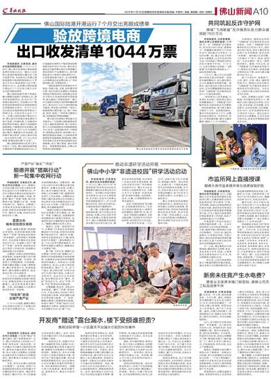 羊城晚报讯 记者张闻、通讯员刘苗苗摄影报道:11月13日21时许,佛山海关驻南海办事处陆港监管科查验关员为一辆出口目的地为泰国的集装箱车辆办结了海关监管手续,至此海关已在佛山国际陆港累计验放
