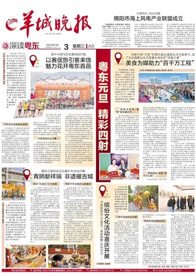 1957年10月1日创刊 2024年1月3日 星期三 癸卯年十一月廿二 湾区新闻部主编 / 责编 黄磊 / 美编 张江/ 校对 杜文杰 粤东地区看我的! 报料热线:(020)114转羊城晚报报料、(020)87776887 报料热线:0754-88161137 广告热线:0754-88161196 E-mail:ycwbst@163.com