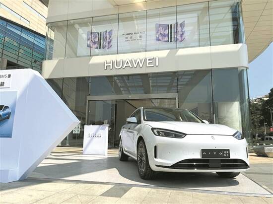 广州市白云区一华为自营店外展示的AITO问界汽车