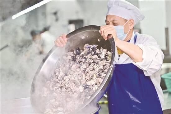 深大食堂后厨师傅将处理好的乌骨鸡下锅熬汤 |