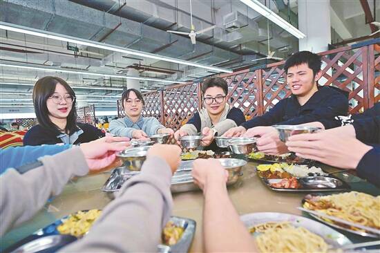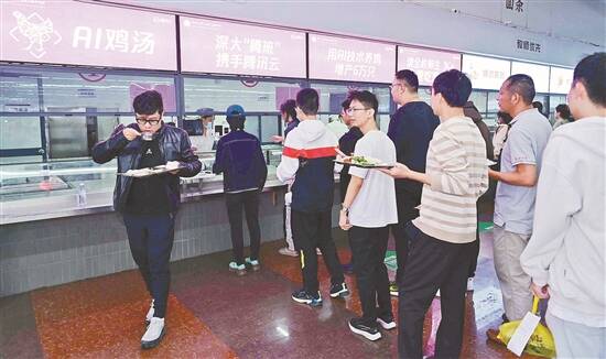 师生在食堂档口排队打“AI鸡汤” |