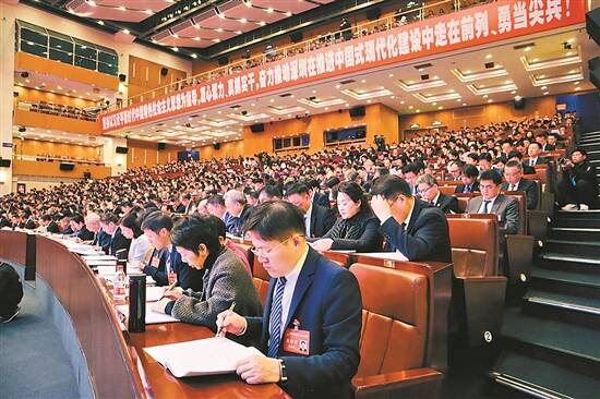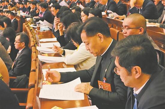 代表们认真审议报告 羊城晚报记者 颜业宏 摄 |