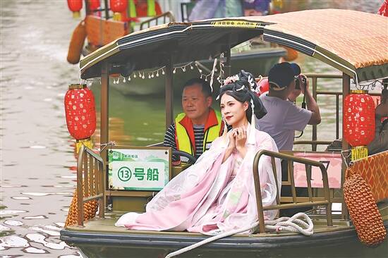 汉服爱好者坐船头留影 王泽宝 摄 |