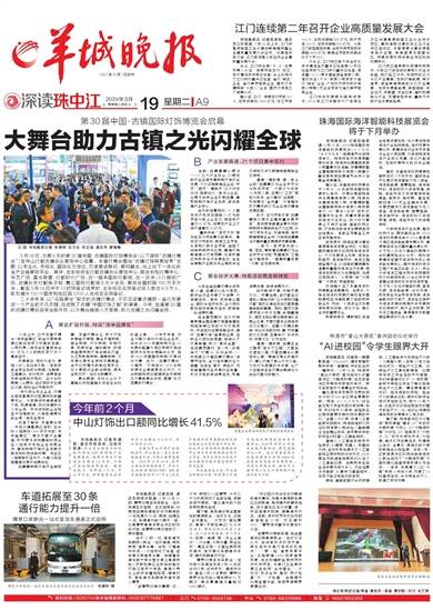羊城晚报讯 记者张德钢,通讯员杨润梓、冯晓月报道:中山是全国著名的传统灯饰及LED照明的产业集群基地,拥有灯饰生产制造企业超过1.6万家,灯饰产品远销世界各地。据海关统计,今年前2个月,