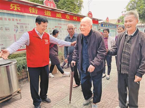 李泽伟(左)积极推动开展关爱老人志愿活动 |