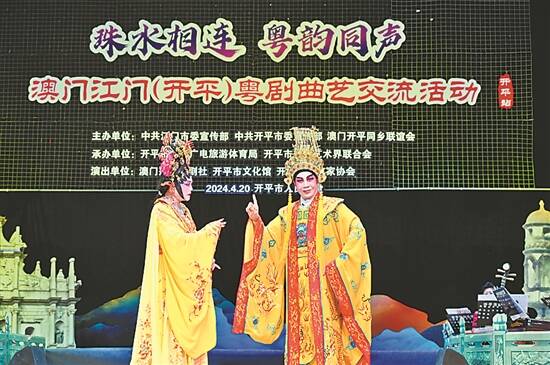 羊城晚报讯 记者陈卓栋报道:记者从江门开平市委宣传部获悉,日前,由中共江门市委宣传部、中共开平市委宣传部、澳门开平同乡联谊会主办的“珠水相连·粤韵同声”澳门江门(开平)粤剧曲艺交流活动(开平站)在开平市人民会堂精彩开锣,来自澳门、开平两地一众粤剧曲艺家轮番上台献艺,为广大粤剧曲艺爱好者送上一场精彩绝伦的文化盛宴。据悉,这是“珠水相连·粤韵同声”澳门江门(开平)粤剧曲艺交流活动的第二站。首站活动日前在江门举办,上演了新编粤剧《碉楼》;第三站将于6月在澳门永乐戏院举办。 据介绍,开平站演出期间,粤剧折子戏《七月七日长生殿》、粤曲对唱《血溅未央宫》《梵台续情丝》等节目依次上演,台下观众目不暇接,掌声不断,喝彩连连。由澳门、开平两地粤剧曲艺家合演的《花田错会》更将晚会演出气氛推上高潮,精彩的表演引得观众爆发阵阵热烈掌声、大呼过瘾。开平市文化系统退休干部张巨山表示:“澳门和开平历来有曲艺文化交流的传统,我以前也参加过几次,这次的活动也是这种传统的延续。我觉得促进大湾区文化交流与融合是非常有必要的,粤剧是我们的传统文化瑰宝,更应该要传承好、发扬好。” 澳门开平同乡会副会长张灿泳感叹:“看完这场精彩绝伦的粤剧粤曲表演后,我深刻感受到广东文化的独特魅力,也被演员们的精湛技艺折服。粤剧作为中国传统戏曲的瑰宝之一,我希望它可以传承下去,历经时代变迁仍能保持强大的生命力。” 相关负责人表示,江门、澳门同属“粤港澳大湾区”城市群的重要组成部分,一水相通、血脉相连,文化同根同源。当前,江门持续实施宣传供给侧结构性改革,以擦亮“10张城市名片”为抓手,厚植城市文化底蕴、提升侨乡城市形象。本次江门、澳门两地曲艺交流活动,以粤剧曲艺为纽带搭建大湾区文化交流桥梁,以文化融合促进民心相通。 澳门演员冼慧英介绍:“之前我们也去过大湾区其他的城市与当地曲艺工作者进行交流,这是第一次来到开平演出,我感觉很兴奋、也很紧张。希望以后大湾区的文艺工作者能多交流、共进步。”开平演员蔡晓静则表示:“开平碉楼与村落是世界文化遗产,澳门也有独特的历史文化,希望双方能有更多文化交流的机会,推动澳门开平两地文化艺术事业进步。”