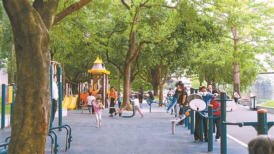 滨江公园内的康体健身区及儿童游戏区 |