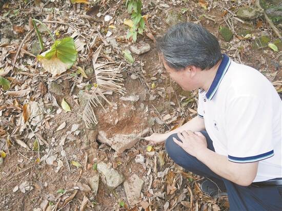 刘汉新在泥土里挖出一块城砖,这是他拾取城砖的常态场景 |