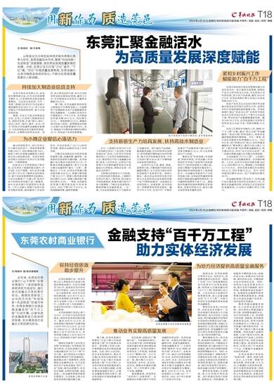 文/周晓玲 图/王俊伟 以制造业为主体的实体经济是东莞核心竞争力所在,发挥金融活水作用,聚焦“科技创新+先进制造”深度赋能,是东莞实现高质量发展的关键。目前,东莞正全力打造“万亿