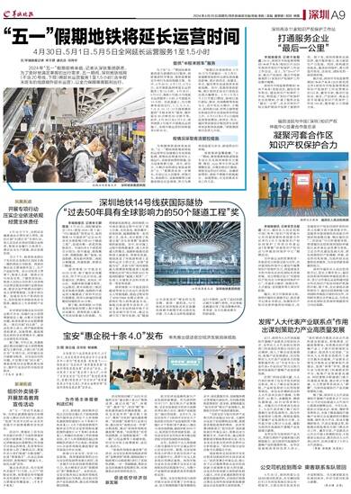 文/羊城晚报记者 宋王群 通讯员 冯玮华 2024年“五一”假期即将来临,记者从深铁集团获悉,为了更好地满足乘客的出行需求,五一期间,深圳地铁线网(不含20号线,下同)将延长运营服