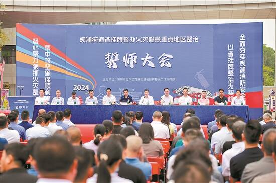 5月7日,龙华区观澜街道在观澜湖新城中心广场召开省挂牌督办火灾隐患整治工作誓师大会,全面部署整治工作。 会议就工作目标、领导架构、主要任务、工作重点和工作要求等五个方面详细部署了省挂牌火灾隐患整治工作,明确将消防整治工作当作今年的重要任务,各单位必须认真贯彻落实,压实整治责任,全面开展隐患整治工作。社区、股份公司、工业园区三个单位代表分别作表态发言。观澜街道主要领导与部门、社区代表签订责任书,并进行深入动员。 下一步,观澜街道将主要着眼“五大”整治目标、按照“四个”整治步骤、抓实“六项”整治内容、打造“三个”整治亮点的工作思路,全面动员、齐心协力、攻坚克难、按照省挂牌督办整治标准,逐步展开五类场所的整治工作,在前期摸底排查的基础上对工作进行细化,制定推进表并挂图作战,每日跟进各场所的整治进度情况,进一步完善各类消防基础设施,切实以此次挂牌整治为契机,夯实观澜街道的消防安全基础。(文/图 李薇 曾嘉丽)