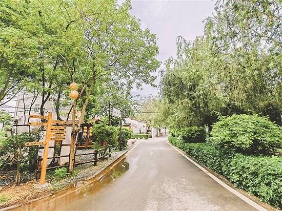 村道两旁遍布绿植,家家户户可推窗见绿 |