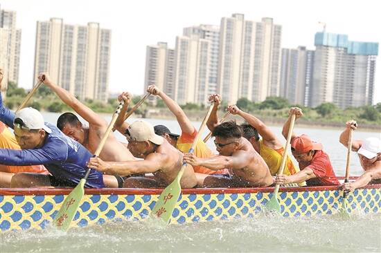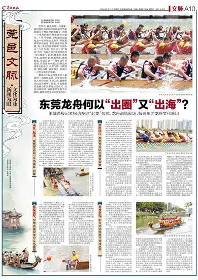 总策划/杜传贵 林海利 总统筹/孙爱群 胡泉 本版统筹/余宝珠 文/羊城晚报记者 石梦卓 图/羊城晚报记者 王俊伟 在东莞,赛龙舟是一件盛事,各种民俗活动和训练在端午节来临前几个月就开始筹备了,为期一个多月的龙舟月更是热火朝天。4月,中堂镇、洪梅镇先后选拔出一批矫健的龙舟手,开展紧锣密鼓的训练,积极准备奔赴丹麦、瑞士参加国际龙舟赛“为国争光”;5月18日,万江正丫村“潜龙”出水,自此开启了东莞龙舟月“文化盛宴”。起龙、赛龙舟、洗龙舟水、趁龙舟景、唱龙舟歌、食龙船饭、吃龙舟饼……每年端午节前后,东莞各地水面上的赛龙舟盛景此起彼伏,蛟龙飞舞,水花四溅,锣鼓阵阵,呐喊震天,呈现出一片热火朝天的景象。 赛龙舟不仅是深受东莞人喜爱的一项竞技运动,还孕育出东莞人齐心协力、不甘人后、奋勇争先的龙舟精神。日前,羊城晚报记者探访东莞多地起龙仪式、龙舟训练现场,解码东莞龙舟文化基因,触摸东莞龙舟的勃勃生机。 孟夏“起龙”,东莞龙舟月“文化盛宴”启幕 东莞是中国龙舟之乡,龙舟文化久负盛名。地处珠江三角洲,东莞水系发达,河流纵横,水面阔广,出门见水,举步登舟,优越的地理条件孕育出历史悠久的龙舟文化。 东莞每年的龙舟竞渡从“起龙”开始。“四月八,龙船兜底挖”,每年农历四月初八前后,东莞水乡各地都会举行仪式感满满的起龙仪式。5月18日上午,“龙腾湾区·潮游广东”2024年广东龙舟季暨东莞龙舟月系列活动启动仪式在万江滘联社区举行,正丫村的老龙舟在“沉睡”一年后再次被“唤醒”,自此开启东莞龙舟月“文化盛宴”。 从前的龙舟多用松木制作,若长期曝露于空气中,龙舟则会变形。为更好地保存龙舟,人们会将其埋在河涌淤泥之中,每年的四月初八来临,再将船体挖出,以备龙舟竞赛,该过程称之为“起龙”。 鞭炮声、锣鼓声、呐喊声响彻天际,今年“正丫起龙”现场热闹非凡,26名正丫村村民齐心协力将龙船从淤泥中清挖出来,洗刷龙舟、装上龙头。随着龙舟逐渐浮起显露出身形,沉睡一年的老龙舟也重新威风起来,一行人乘上老龙舟划向江面,岸上围观的群众纷纷拿起手机拍照记录,狮鼓龙舟鼓声不绝于耳。 东莞民间赛龙舟的习俗绵延数百上千年。自宋代以来,东莞就有赛龙舟的习俗,到明清时期,东莞龙舟赛的场面更加宏大,明末清初学者屈大均在《广东新语》卷十八《舟语》中,就记载了东莞龙舟竞渡的盛景:“东莞有彭峡,五月时,洪流滂濞,放于百里。观者画船云合,首尾相衔,士女如山,乘潮下上,日已暮而未散……竞渡而惊涛涌起,雷雨交驰。舟去而水痕久不能合。斯亦游观之至侈者。广中(珠三角)龙船,惟东莞最盛。自五月朔至晦(从初一到三十),乡乡有之。”数百年过去,古人笔下的东莞赛龙舟盛况一直延续至今。2011年,东莞的赛龙舟入选第三批国家级非物质文化遗产名录。 底蕴深厚,全景式展现龙舟文化盛景 “朱旗画楫蔽江下,潮走万江飞水马。”清代诗人罗瑞球的诗句,描述的正是万江赛龙舟的盛景。赛龙舟,也称“龙舟景”,有两种形式:一种是设标的竞渡,即“赛龙夺锦”赛;另一种是不设标的友谊赛,称为“趁景”。东莞所有的龙舟赛中,万江龙舟赛是最早举行和最具规模的,有着“东莞龙舟第一景”的美誉。 在东莞,每年水乡镇村都自发举行龙舟赛,而每年东莞赛龙舟都从万江开始,此后,各镇各村也根据当地潮汐大小,定出各自竞渡、趁景的日子。“初一景,万江租;初二景,西塘尾;初三初四大汾流涌尾……”这首东莞本地居民耳熟能详的民谣,正是东莞龙舟文化的生动写照。赛龙舟、洗龙舟水、趁龙舟景、唱龙舟歌、食龙船饭、吃龙舟饼……东莞人不仅赛龙舟,与龙舟相关的民俗活动也丰富有趣。 近年来,东莞开展的各类官方赛事又持续为东莞龙舟“加码”又“升温”。去年在沙田镇举办的粤港澳大湾区(广东)龙舟邀请赛,来自粤港澳大湾区的18支男女混合龙舟队、东莞水乡沿海镇街10支男子传统龙舟队,以及12支沙田男子组、女子组龙舟队同江竞渡,让东莞龙舟频频火爆“出圈”,热度不断攀升。 今年,举办大湾区龙舟赛仍然是东莞龙舟月活动的重头戏:6月21日至23日,2024年粤港澳大湾区(东莞)龙舟邀请赛暨龙舟嘉年华将在麻涌镇华阳湖国家湿地公园举行;6月18日、23日,中堂、石碣还将分别举办两场大型龙舟竞标活动,更有寒溪河趁景系列活动、麻涌龙舟大联赛、石排镇田寮村端午节传统龙舟景、横江厦端午游旱木龙习俗活动等共40多项龙舟文化活动,全景式展现东莞龙舟文化盛景。 冲出国门,东莞龙舟队出海争荣誉 从传统民俗、民间赛事到大型赛事,东莞赛龙舟有声有色、红红火火,全民齐参与。不仅如此,多年来东莞积极参加国际比赛,取得荣誉累累,展示出强劲实力,成为中国龙舟在体育竞技赛场上的中坚力量。1984年,东莞龙舟队赴香港参加第七届国际龙舟邀请赛勇夺冠军;1998年,沙田镇的龙舟队代表国家组队参加在马来西亚、新加坡等国家和地区举行的亚洲杯龙舟赛和国际邀请赛,先后夺得五个冠军;1996年,沙田龙舟打破了传统观念,成立了全国第一支女子龙舟队。1999年8月,沙田镇女子龙舟队代表国家参加在英国诺丁汉举办的第三届世界龙舟锦标赛,一举囊括女子三项冠军;进入21世纪,东莞市赛龙舟亦成绩斐然,龙舟队伍在亚洲龙舟锦标赛、世界龙舟锦标赛、“炎黄杯”世界
