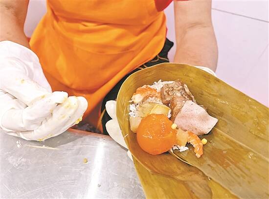 文/图 羊城晚报记者 陈卓栋 通讯员 朱强 唐景华 廖守庚 “用柴火煮的粽子,最好吃了!”5月30日上午,刘东群看着厨房里几口正在熬煮的大锅,骄傲地介绍。灶膛内,柴火烧得通红;炉头上,水蒸气氤氲蒸腾。大锅里煮着的,是美味,更是“非遗”。200多颗鹤山市第四批县级“非遗”——宅梧柴火粽,经历约7个小时的熬煮即将出炉。除了是端午佳节的应节美食,宅梧柴火粽还被宅梧群众当作喜庆的象征。如今,宅梧柴火粽更成为鹤山著名的特产和手信,是“江门三点三”休闲时光的必备美食。 每逢喜事吃粽子 刘东群是江门鹤山市宅梧镇人。小时候,老人经常跟她提起一个“表村出皇娘”传说。据传,南宋时期,宅梧表村苏姓家族有一个民间女子,她因机缘巧合成为了贵妃。虽然贵为妃子,但苏贵妃谦逊善良。每逢重大节日,她都会把自己包好的粽子送给家乡的穷苦百姓。乡亲们也因此感恩戴德。“从这个故事就可以看出,粽子在宅梧人生活中有多么重要。”刘东群说,宅梧人做柴火粽子的历史已有500多年。 粽子是中国传统节日端午节的应节美食。而在宅梧,人们对粽子的喜爱不分节庆。刘东群介绍:“在宅梧,无论是生日、新居入伙、添丁满月、结婚,还是其他喜庆节日,村民们都会包粽子来吃。在宅梧,粽子就是喜庆的象征。” 柴火慢熬出美味 表村如今属于宅梧镇双龙村委会。5月30日上午,记者依照定位来到当地一个荒废的村小学校址。这里已经被刘东群改成一间粽子加工场。 工场内,几位阿姨正在有条不紊地包粽子。码叠好几片粽子叶、卷成漏斗状,依次倒入糯米、豆、五花肉、咸蛋黄、元贝、虾米等,包裹好后用草绳扎紧。不到1分钟,一颗拳头大小的粽子就包好了。据悉,宅梧柴火粽制作过程工序繁多,包括摘粽叶、洗粽叶、制作绑绳、淘米、剔肉、去皮、切肉、裹扎、烧制等,所有环节全靠手工。 刘东群介绍,宅梧柴火粽在草绳用料,粽叶和食材处理及烹饪方式等方面有着“独家秘方”。包裹粽子的草绳取材自当地野山姜根茎,“野山姜辛温驱寒,益气补脾,经常适量食用能调理脾胃虚弱的状态,改善虚寒型的体质,有利于人体健康,且对感冒发热有一定的治疗作用。”粽子制作时,全程均用山泉水。譬如粽子叶用山泉水洗净,放入锅中焯水、煮至变软,然后捞出泡山泉水冲洗,待变凉后备用;包粽子用的米均为糯米,用山泉水洗净即可,不用泡水。 而最重要的烹饪环节,则全部依靠柴火熬煮。刘东群说,柴火灶上大锅装上山泉水、大火烧灶,趁着“冷水冷锅”时,一颗颗粽子依次投入水中,“不能一下全倒进去,怕粽子叶被撞破,影响美观。”每一锅能放200多颗粽子,“不能放太满,要给粽子翻身的空间,让粽子受热均匀。”水烧开之后,要不时给粽子翻身,让糯米充分熟透,馅料充分融入糯米当中,“每隔3个小时就往灶膛添一根柴,让灶头保持一定温度,不能太旺、也不能熄火。”从水开后计时,熬煮约7个小时才可出炉。“用煤气或者其他方式煮出来的粽子,味道总会差一些。”刘东群说。 记者品尝了一颗刚出炉的粽子,感觉其紧实度适中,米粒不会压得太实、也不会太松散;一口下去,口感富含肉的油润和米豆的清香,而且米粒清爽,不会太黏稠。一颗粽子下肚,肠胃毫无滞胀感。 “粽”里寻找致富路 刘东群介绍,小时候她便跟着家里长辈学习宅梧裹粽制作技艺。长大后虽然到外地工作生活,但一直忘不掉家乡宅梧粽的味道。2020年回乡探亲时,她发现村里有较多富余劳动力,于是便盘活闲置多年的表村小学,开设粽子加工场,同时聘请附近两个村的十多名妇女一起包粽子,解决她们的就业问题。目前,她已开发出传统咸肉、西米豆沙、碱水、鲍鱼金蚝、红豆相思、五谷杂粮等口味的粽子,成为鹤山当地闻名的特产和手信。 据悉,今年,粽子加工场从3月就开始接单生产,最近一段时间,更是进入生产销售的高峰期。目前,粽子厂每天可以出货2000多颗粽子,销往江门、佛山、广州等地,预计今年销量可达12万颗,其中3万多颗粽子通过电商渠道卖到全国各地。 在刘东群的努力下,2022年,宅梧柴火粽加工技艺入选了鹤山市第四批县级非物质文化遗产代表性项目名录。如今,宅梧柴火粽子不仅打开了销路,也打响了名声。不少广州名厨、国外友人慕名前来体验、品尝,众多客户提前预订粽子。刘东群的愿望很朴素:“我就是想把宅梧柴火粽传承下来,让宅梧粽走出鹤山,走出广东,同时也可以解决村民的就业问题,让我们村通过粽子走向致富路。”