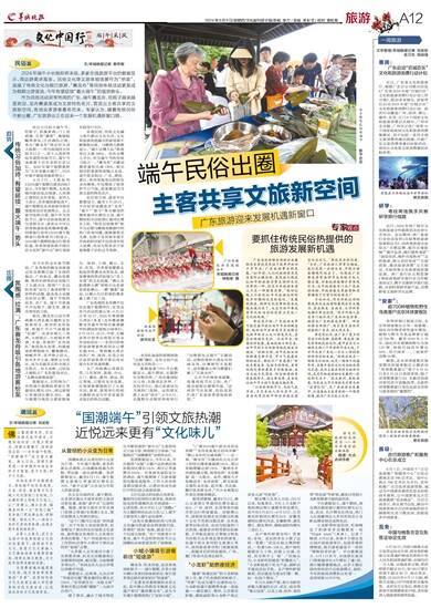 文/羊城晚报记者 黎存根 2024年端午小长假即将来临,多家在线旅游平台的数据显示,周边游需求高涨。民俗文化等文旅体验场景作为“桥梁”,连接了传统文化与假日旅游,“赛龙舟”等民俗体