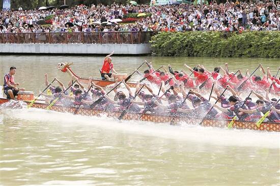 羊城晚报记者 王俊 楫桨飞舞迎端午,沙河龙舟竞逐浪,又是一年端午好时节,碧波荡漾的大沙河上演奋楫争先、赛龙“狂飙”的“名场面”。6月10日,由深圳市南山区人民政府主办的“第六届大沙河龙舟邀请赛”在南山区大沙河长廊成功举办。本次龙舟邀请赛不仅邀请到了来自南山区各街道、协会、大学、企业等本地龙舟队,还有来自香港、澳门、台湾地区以及国际友人组成的龙舟队,共25支队伍约550名参赛选手逐浪大沙河,欢度端午佳节。 “黄金水道”上赛龙舟 传统文化在南山 一艘与众不同的巨型龙舟静静地伏于大沙河畔,这艘长约32米的巨型龙舟,正是中华传统龙舟,需要54人才能驾驭,人数众多,操作难度极大。随着密集的鼓点响起,号称“东莞龙王”的中堂镇四乡村龙舟队,为现场观众带来了震撼的传统龙舟炫技秀,快速起步、急停、掉头、站立划、跪划,驰骋浪花之间,巨龙一往无前,龙舟文化的魅力在此刻展现得淋漓尽致。 随着一声发令声响,比赛正式开始。在500m的航道上,每一名选手都展现了非凡的技艺和顽强的拼搏精神。他们配合默契,划桨如飞,龙舟在水面上划出一道道优美的弧线,如同一条条蛟龙在水中翻腾。两岸观众热情高涨,欢呼声、加油声此起彼伏,十分热闹。经过激烈的角逐,最终鹏博加冠龙舟队凭借出色的表现和团队协作,脱颖而出,荣膺冠军,深圳南山区龙舟协会和南山龙协北体大联队分别斩获亚军和季军。 本次龙舟赛还吸引到来自德国、英国、美国、意大利、瑞典、巴基斯坦、巴西、菲律宾等11个国家的外籍友人,在大沙河上共同组成精彩蛇口国际友人队,以选手身份参与这场端午龙舟争渡大戏,一起体验感受赛龙舟这项传统活动的文化内涵与竞技精神。他们的领队周永聪在赛后表示,在长期训练中,各国选手都对中华传统习俗和文化产生了浓厚的兴趣,期待越来越多的国际友人能够参与龙舟赛事,让中华传统文化的魅力感染更多人。 值得一提的是,此次龙舟赛举办地大沙河已经成为深圳市民观光游览、休闲运动的热门选择,这里河面曾经垃圾泛滥,污水横流。从2016年起,经过严格的水体治理和生态修复,这里的生态环境发生根本性的好转。现在的大沙河已经成为一个生态、文化、体育走廊,沿大沙河区域形成了一条科技创新轴,大量高科技公司陆续入驻,这里成为了深圳打造全球创新之都的核心区域。从“污水沟”到“黄金水道”,印证了生态治理的新成效,让绿水青山与金山银山相映生辉。 深圳南山区表示,未来将继续举办更多精彩的文化体育活动,为市民提供更加丰富、高质量的文化服务。同时,南山区也将进一步加大对传统文化的保护和传承力度,让更多的人了解和喜爱中华传统文化,共同推动中华文化的繁荣与发展。 南山商圈动作频频 点燃假期消费经济 除了传统龙舟赛,端午节假期,深圳南山一众商圈也推出系列活动,五彩辫绳、艾草香囊、安迪沃霍尔艺术原作展、百只小熊玩偶等,消费体验和消费场景都进行了升级,带火假期经济。今年端午节刚好赶上数个南山商场的周年庆和年中庆大节点,团购、抽奖、满额赠购物卡等都给到了消费者实实在在的优惠。 端午节期间,餐饮优惠也有大动作。南山海岸城联合招商银行掌上生活推出“6折吃饭月”活动,端午聚餐省至6折,海岸城30家门店可用,活动持续到6月30日。来福士、西丽宝能环球汇、前海卓悦INTOWN等商场也纷纷推出餐饮团购券或打折活动。 2024年是“消费促进年”,对于如何推动消费持续扩大、培育壮大新型消费,南山区正在努力破题。在“新型消费”的浪潮中,南山多个大型商业综合体凭借“名品”、体验、开放、跨界融合等商业关键词,抢占着消费者注意力,吸引深圳市民前往“买买买”。 值得一提的是,“爱车南山购”第二轮汽车专项促消费活动仍在火热进行,南山区消费品“以旧换新”线上专项促消费活动也于6月8日0时启动,将持续到8月。其中,6月份先行启动家用电器专场活动,7月份将举办消费电子专场活动。 活动期间,消费者通过“以旧换新”方式购买符合条件的消费电子和家用电器,最高按照销售价格的10%给予补贴,单笔订单补贴金额不超过500元,每名消费者仅限参与4次以旧换新立减补贴(家用电器、消费电子各2次),单个消费者补贴不超过2000元。补贴总额度4000万元,其中家用电器专场、消费电子专场各2000万元,先到先得,用完即止。