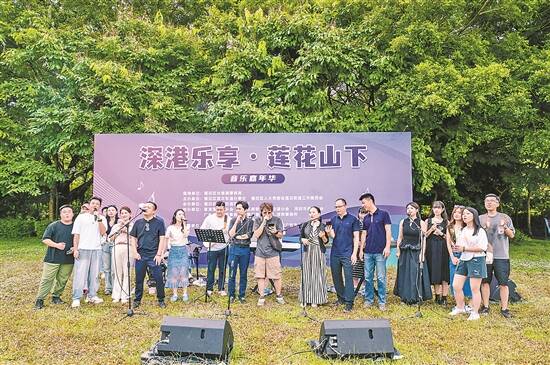羊城晚报讯 记者郑明达、实习生吴美伊报道:近日,“深港乐享·莲花山下音乐嘉年华”活动在莲花山风筝广场拉开帷幕,深港青年共同打造了这场音乐盛宴,为深港两地的文化交流与融合添上了浓墨重彩的一笔。 活动现场,深港青年共同合唱一首经典粤语曲目《红日》,用歌声传递着深港两地的深厚情谊,展现了两地青年的无限活力与团结一心。 活动在福田区台港澳事务局的指导下,取得了圆满成功。莲花街道携手香港莲花同乡会、福田区新联会莲花街道分会、深圳市律师协会,莲花街道联组人大代表及政协委员代表,深港青年共60余人参与活动。现场来自香港莲花同乡会、福田区新联会莲花街道分会、广东卓建律师事务所、泰和泰(深圳)律师事务所、北京市京师(深圳)律师事务所深港两地的五个乐队依次登台,展现各自的风采。吉他与贝斯的扫拨、键盘的起落、鼓棒的敲击、歌声的融合……欢呼与掌声将活动推向了高潮。他们的表演风格多样,涵盖了流行、摇滚、民谣等多种元素,犹如一场丰富多彩的音乐之旅。 福田区委常委、统战部部长王立萍在致辞中表示,希望深港青年能够在此活动中通过音乐进一步地交流,“深港青年们的心紧紧连接在一起,让我们共同发展、共同进步,共同创造祖国更加美好的明天。”