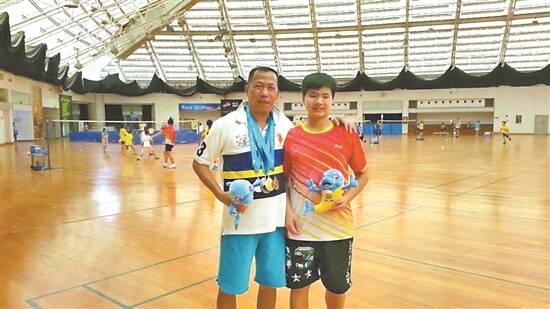 梁伟铿在广州训练时与教练徐伟文合影 受访者供图 |