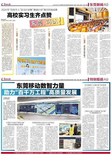 文/陶丽蓉 杨文 图/受访者提供 战鼓催征马蹄疾,砥砺奋进正当时。在龙年高质量发展之路上,东莞移动着力推动城市智慧建设、加速产业数字化转型,凭借“数智”技术优势,将自身发展全面融入数字东莞“百千万工程”发展大局之中,助力数字经济高质量发展。 打造双千兆城市“智慧大脑” 赋能滨海湾数智化管理 近年来,随着信息技术的高速发展,各城市竞速迈进“智慧城市”赛道,推动新型智慧城市建设已成为现代城市重塑发展的新优势。东莞移动依托双千兆网络、5G、大数据、云计算、物联网、人工智能等数字技术,沉淀了一大批创新技术与应用场景,助力建设“智慧名城”。 在东莞滨海湾,东莞移动将双千兆网络、大数据、AI人工智能、绿色数据中心等数字技术深入融合到城市建设管理中,构建出城市智慧互联“一张网”、城市治理“一平台”、数字赋能“一中心”,实现物联、数联、数用,全面提升东莞滨海湾新区的城市公共服务与治理现代化能力。基于全光网智慧城市项目,东莞滨海湾建成了东莞市镇街(园区)首个综合调度、数字赋能的智慧城市管理中心。 目前,东莞滨海湾已建成具有高可靠性、高安全性、高可扩展性的千兆全光网络。在实现网络覆盖的基础上,东莞移动以道路治理为突破口,在滨海湾建设了智慧道路管理平台,涵盖交通、市政、安防、应急等多领域21类应用场景。目前,东莞滨海湾已启用道路治理“一网统管”、道路照明智联节能、视频监控共享共用、道路交通绿波通行、公共停车统一运管、工程车辆精准管控和微基站即挂即用等多项应用,实现了道路交通、安防、管运的一体化管理和高效协同。 东莞移动率先完成3CC试点验证 正式开启5G-A序幕 2024年3月,中国移动在杭州首发5G-A商用部署,东莞上榜首批100个5G-A网络商用城市名单。2024年4月,东莞移动在南城区、松山湖室外和室内环境下分别完成了2.6G与4.9G三载波聚合试点验证,经过现网实测,下行峰值速率可突破4Gbps,标志着东莞成功跻身首批100个5G-A网络商用城市名单,正式开启5G-A序幕。 5G-A是5G增强的演进版本,也被称作5.5G,相较于5G拥有更高的带宽、更低的时延和更广泛的链接能力,作为5G-A的重要技术之一,三载波聚合(以下简称3CC)是5G-A的基础体验网,中国移动依托3CC技术,可进一步增加网络厚度,大幅提升区域内用户的上下行峰值速率,满足人口密集区域的高流量用网需求。同时,超大带宽可进一步支撑高清云直播、裸眼3D、CBA赛事VR直播、云手机/云游戏、XR元宇宙超体空间等应用场景部署,为用户带来更畅快的体验。 据介绍,东莞移动计划于今年开始逐步在全网铺开5G-A三载波聚合建设,将在东莞商圈、各商业步行街、超五星级酒店、国际甲级写字楼等商业综合体以及高铁、地铁等重点区域推广落地5G-A 3CC示范区,推动5G-A网络的规模化和场景商业化,并联合产业各界,探索5G-A通感一体、通算融合等先进技术与低空经济、车联网、工业互联网等多场景融合的产业实践,为东莞数字经济发展注入新动能,届时,东莞市民将会切身感受到5G-A网络带来的全新数字化体验。 信令数据为“交通大脑”再添智慧 近日,东莞移动与东莞市交通运输局签订信令出行特征数据处理项目协议,充分利用大数据梧桐洞察能力,将基于以中国移动九天·川流出行大模型为基础的大数据分析平台,对东莞市人口属性、人口特征、出行特征、重点场所客流等交通指标进行数据统计分析以及重大节假日期间的人口流动监测,形成精准定位、行程轨迹、出行分析、人流分布、驻留分析等一系列能力,助力东莞市交通运输局构建完备的智慧交通系统。 借助信令数据分析城市居民时空联系,越来越成为优化交通生产活动、提升交通服务的一个重要手段。据了解,东莞移动融合交通行业大数据与信令数据,为东莞市交通运输局提供了基于交通网格小区的人口时空分布调查与分析、全市域OD调查、全市出行强度调查、全市常住人口宏观出行指标调查、轨道站点客流分析、热点区域客流分析等数据报告,从交通小区层面动态刻画全市居民的交通出行特征以及出行规律,并通过大数据算法分析交通现状和影响交通行为特征的相关因素,为城市交通规划建设、区域交通协调、优化调整交通设施布局等一系列重大交通问题的研究决策提供数据依据与支撑。 万家企业装上污源监测“电子眼” 5G赋能精准治污 为实现精准治污、科学治污、依法治污,推进产业转型升级和经济高质量发展,东莞移动打造5G智慧环保解决方案,上线5G污染源在线监控系统,助力东莞排污精准溯源,让环境保护开启数“治”之路。 据了解,东莞移动5G智慧环保项目基于中国移动物联网、大数据、5G等技术,依据国家法律、法规、行业标准构建园区环境综合监测系统,对东莞市生产企业、工业园区、化工园区的大气、水、土壤、固危废等进行在线实时监测,通过整合多源监控数据,辅以气象监测数据和智能分析模型,从多目标、多维度、全生命周期对区域环境进行数字监管。 “5G污染源在线监控系统实现了对重点排污企业的实时监控巡检,有效弥补了人防的不足,大幅提升了监管效率,节约了执法成本。”自环保局上线5G污染源在线监控系统后,监管人员通过后台即可详细掌握重点企业的排污情况。该系统通过在企业的排污口安装污水、空气、黑烟等排