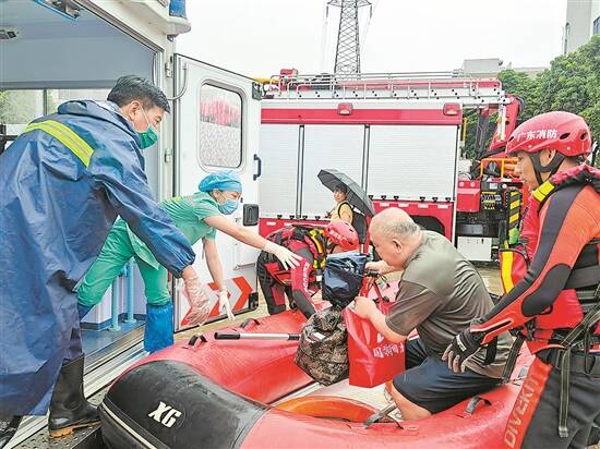 羊城晚报记者 李洪宝 通讯员 莞消宣 “我家里老人突发哮喘,现在因为下暴雨,救护车都开不进来!” 8月21日中午,东莞市消防救援支队指挥中心接到报警,东莞市横沥镇某小区一老人突发哮喘急需送医,但由于雨势过大,急救车难以达到病人住处,病人家属向东莞消防求助。接到报警后,东莞消防救援支队指挥中心立即调派横沥消防救援大队出动1艇5人赶赴现场进行紧急救援。 记者了解到,由于连日来的强降雨,雨水已将部分道路淹没,救护车无法通行。消防救援人员到达现场后,积水已经没过消防救援人员的膝盖,而老人呼吸较为急促,现场情况紧急,消防救援人员迅速制定营救方案。在做好周密的安全措施后,消防救援人员谨慎采取背负、探路、保护的方式将被困人员转移至冲锋艇上。随后,消防救援人员立即将老人送至救护车上,并与医院说明紧急情况,为患者开辟绿色通道,协助老人及家属最快时间就医。老人经过就医后,目前生命体征平稳,身体正在恢复中。 “感谢东莞消防,为我父亲开辟了生命通道,让他及时得到救治,谢谢你们!”老人的亲属激动地说。 由于近期东莞市短时强降雨集中,导致多地积水,东莞消防提醒广大群众,面对连日来的降雨需保持警惕,做好防雨、防汛和防雷、防风等防灾避险准备,并加强防范局地强降雨可能诱发的山体滑坡、城乡内涝等次生灾害。市民如遇险情,请及时拨打119报警电话求助。