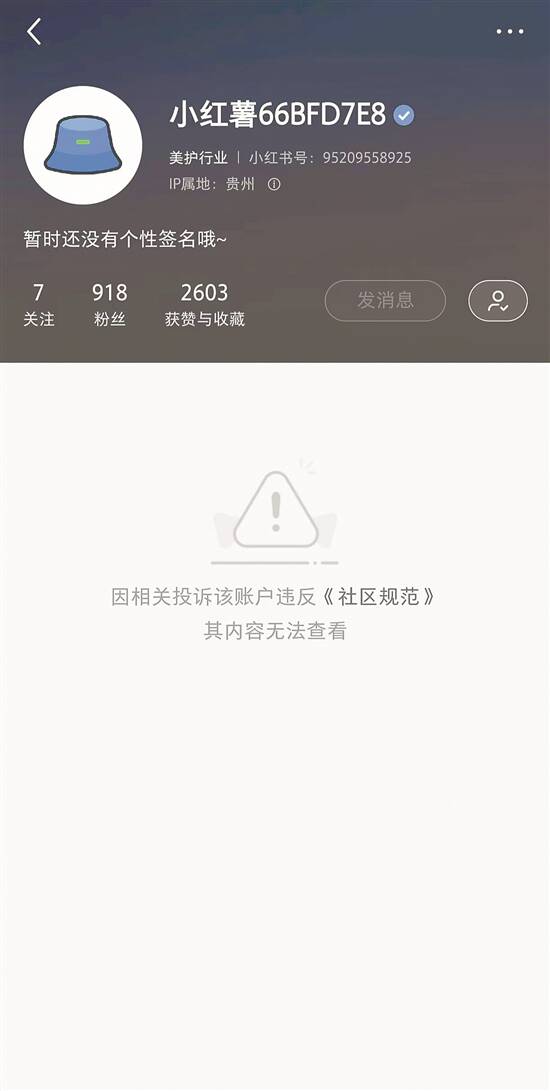 “舞南方美妆好物优选”店铺账号显示“内容无法查看”(小红书平台截图) |