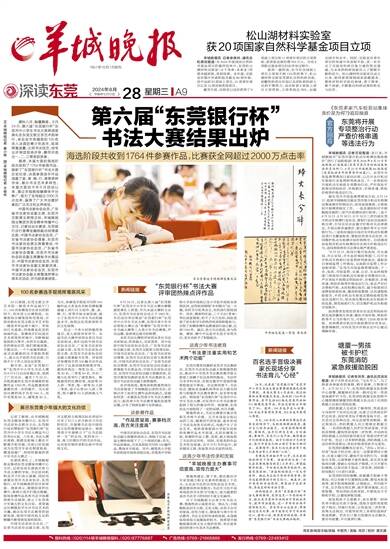 文/羊城晚报记者 秦小辉 图/羊城晚报记者 王俊伟 清秋八月,翰墨飘香。8月24日,第六届“东莞银行杯”东莞市中小学生书法大赛暨颁奖典礼在东莞文联文学艺术院举行,来自全市各镇街的
