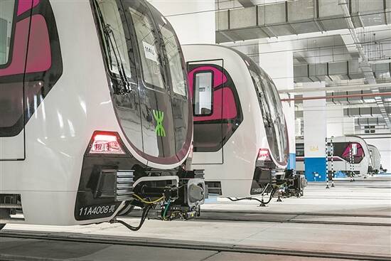 文/图 羊城晚报记者 宋王群 通讯员 王禹程 7日,记者从深铁集团获悉,11号线新型列车将于11月9日正式上线载客运营,与此同时,11号线二期岗厦北站至华强南站新线区段也将开展不载客时刻表试运行,为年内高水平、高质量开通运营做准备。 新车尽显“现代风范+科技魅力” 记者获悉,11号线增购的新型列车全部采用国产化装备。在外观设计方面,车身创新性地运用了渐变色腰带涂装,设计灵感源自深圳蓝紫色的夜景,涂装通过几何图形的巧妙分割,构建出一种现代且富有层次感的视觉效果。车头则沿用了传统流线型风格,前端巧妙地融入了三角梅花瓣的元素,与车身渐变色搭配相得益彰,生动展现了深圳这座城市的现代化繁荣风貌与无限活力。 新车普通车厢的扶手和座椅边框均设计为蓝紫色,座椅两侧设有花瓣图案,营造出一种简约而高雅的乘车氛围。商务车厢则采用花瓣形态的仿生座椅,搭配胡桃木纹饰面板与屏风式隔断。 在便民设施、技术应用以及环保方面,11号线新型列车更是“科技满满”,每节车厢都贴心配备了手机无线充电设施,方便乘客为手机充电,解决“电量焦虑”。新型列车还采用了多种气密控制技术,可降低车内气压变化,进一步提升乘客乘坐的舒适性。除此之外,11号线新型列车应用了永磁牵引系统,牵引节能20%以上,并且在列车构造上充分使用环保铝型材、铝蜂窝、铝板等节能材料,不仅减轻了车体重量,提升了运行性能,还彰显出深圳城市轨道交通向绿色化、环保化及高效化转型的坚定决心。 二期同步不载客时刻表试运行 据悉,深圳地铁11号线二期连接既有11号线岗厦北站,新设福星站、华强南站两座站点,全长2.05公里。随着该区段正式开通运营以及新车的陆续上线,有望进一步提升乘客在岗厦北站换乘11号线与14号线的出行体验,同时11号线全线工作日高峰运能也将迎来极大提升。 记者了解到,“不载客试运行”是地铁开通运营前一个至关重要的环节,其中模拟正常运营的“不载客时刻表试运行”是整个试运行的最后一个阶段,可以全面检验线路各设备系统的可靠性、安全性、准确性,确保其在开通初期运营后能够安全、稳定、高效地运行。 据介绍,11号线二期的不载客时刻表试运行将于11月9日起与11号线新型列车上线同步开展,计划进行20天以上。在此期间,11号线碧头站至岗厦北站的既有线路区段将维持正常运营服务(岗厦北站往机场北站方向的半程末班车时间将由0:30提早15分钟至0:15),岗厦北站至华强南站的新线区段将进行不载客时刻表试运行。 “试运行期间,当11号线列车从碧头站开往岗厦北站后,将停止载客服务,转为不载客状态继续行驶至新线区段进行折返。随后,列车将在岗厦北站再次投入载客运营。”深铁集团相关负责人表示。 深铁集团提醒,11号线二期在不载客试运行期间,岗厦北站11-14号线的换乘模式也将试行调整,请市民乘客留意深圳地铁官方公告,做好出行安排。需要注意的是,岗厦北站至华强南站新线区段不载客试运行期间,福星站和华强南站将暂时不会对外开放,请市民乘客在搭乘11号线抵达岗厦北站后,在现场工作人员的引导下有序离车。接下来,11号线二期还将继续推进各项安全评估工作,为新线区段在年内实现开通初期运营做好充分准备。