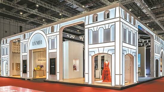 路威酩轩展台上金光闪闪“中国龙”吸睛无数,一个巨型tabby手袋模型横亘在蔻驰展台,巨大的中式卷轴营造出曲水流觞的清雅园林意境……在消费品展区,全球三大精品集团(路威酩轩、历峰、开云)齐聚,全球日化巨头集团携旗下数百个品牌组团亮相,中国消费者对美的需求攀升,吸引着国际知名企业纷纷加码。